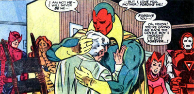 The first four-part miniseries launches out of the main Avengers book, with reference to the threat posed by the Dire Wraiths. Along the way, the book finds time to reference Walt Simonson’s iconic Thor run or Denny O’Neil’s Iron Man work. The first two issues of the regular monthly comic exist as a crossover with Vision and the Scarlet Witch. The book devotes so much time to various continuity loose ends that a substantial portion of its page-count is devoted to flashback, with quite a few helpful asterisks pointing to the source of various plot points.