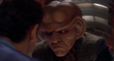 To be fair, it’s consistent with what we saw of him in The Nagus, but Rom has come a long way in half a season, and it’s hard to reconcile with the bumbling idiot who appeared in Vortex and was referenced in Progress. I know Quark is abusive towards him, and Quark selling Rom’s seat would be perfectly in character (as the episode alludes), but it’s weird to see Rom so indifferent to his brother’s safety. Isn’t the fact that Rom does care for Quark part of what makes Rom such a poor excuse for a Ferengi?