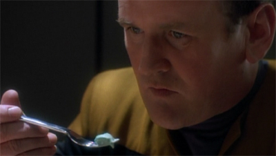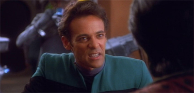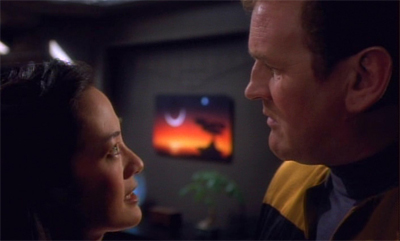 Like Dax, it feels like a cheat. There the interesting moral question was disarmed with a convenient plot twist. Here, the most potent ethical and moral question of the episode is pushed to the background and dealt with off-screen. There’s no indication that the debate was “long and difficult.” It was set up, and then it happened, off-screen. It’s a cop-out of a difficult question, and one I’d respect the show a lot more for dealing with on-screen.