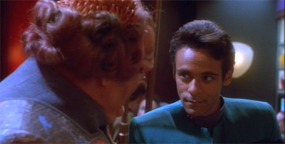 Unfortunately, the opportunity for this sort of character development is rather limited. Rugal winds up feeling more like a political football as the story broadens its focus to explore the political scheming taking place. The closest we get to character development occurs when he shares a scene or two with the O’Brien family, but it’s far too fleeting to make any lasting impact. Like Jadzia in Invasive Procedures, it feels like the focus of the episode gets a bit lost in the high-concept.