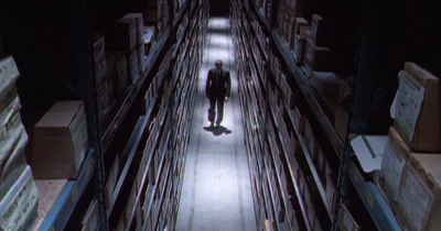 Similarly, the show’s closing scene, in which the Cigarette-Smoking Man neatly tucks away a piece of vital evidence in what appears to be a secret warehouse stocked to the brim with various articles the government would rather forget about, feels like an homage to Raiders of the Lost Ark. Of course, that final scene has taken on a life of its own, and I suspect that that short dialogue-less moment is part of the reason that William B. Davies would return to the show and become such an integral part of its mythology and framework.