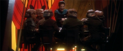 However, this all feels like an after-thought. It’s barely touched-upon. There are a handful of scenes dedicated to this thread, and they seem to point to a foregone conclusion. Arguably, it’s another way that Deep Space Nine differentiates itself from The Next Generation. The Next Generation would have pushed the moral issue to the fore and the character stuff to the background. By focusing on Dax and leaving the wormhole to the background, Deep Space Nine makes its priorities clear.