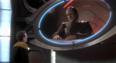 Playing God is – structurally – quite similar to Shadowplay. The episode follows the same basic format. We have three plots running concurrently. One of these plots is a science-fiction plot while the other two are centred around character development. What’s interesting about Playing God is that the script essentially changes the priority of these plot threads. In Shadowplay, the central plot concerned the science-fiction mystery in the Gamma Quadrant, while here the ethical quandary is pushed firmly to the background. (Much to the chagrin of writer Jim Trombetta.)