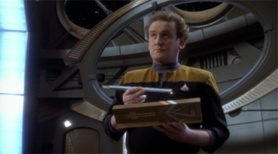 Speaking of late in the game, the vole subplot feels like a relic from a first season script, back when the crew were first taking over the station. One imagines the voles probably should have become a problem a lot sooner. To be fair to the script, O’Brien offers an excuse for the delay in their resurgence (“they weren’t bothering us until we started moving into areas of the station that they’ve been hiding in”), but it still feels like Deep Space Nine should be a little past this point.