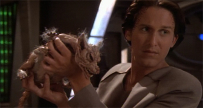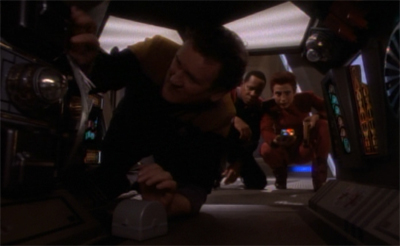 Even discounting the easy resolution, the protouniverse plot does suffer from being pushed into the background. The climax of the episode tries to push the various threads together, but it doesn’t work. The voles sabotage the forcefield. The forcefield sabotage allows the universe to grow. Dax and Arjin have to put their differences aside and fly through the Wormhole, which is suddenly an obstacle course. It all feels just a little too convenient and a little too contrived. It’s not fluid. The disconnected subplots of Shadowplay worked better, because there was no awkward attempt to tie them all up together.