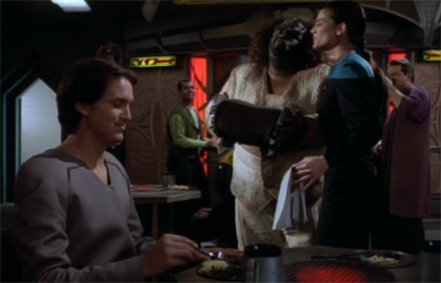 Also, when it comes to the proto-universe subplot, there’s a whole lot of stupid going around. A whole dilemma over life in a universe that hasn’t even formed yet? I wouldn’t expect there to be much sophisticated life before the Big Bang, and I expect when the universe formed proper with the Big Bang, such theoretical life would have the bejeezus blown out of it. And yet, Sisko acting like destroying such compact microbial life is akin to the Borg, all the while balancing this super-mega decision with “OMG my son is dating a dabo girl!”.