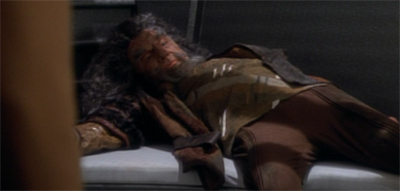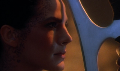 I think I have to agree with Ed Zane, Terry Farrell seems really out of place in this episode. She doesn’t seem to have any Klingon personality in her, so her tagging along is really awkward. It’s like if Ensign Kim went along with a bunch of Klingons in the cause of vengeance, he just wouldn’t belong. As Ed said, she’s just not tomboyish enough at this point, she seems unable to strike up any chemistry with these Klingons, it all feels forced. Nana Visitor would have done better, I could buy that she’s strong enough of a character that she wouldn’t feel pressured to grab a Bat’leth or eat the heart, revenge is enough for her. Dax however, comes across as the nerdy Klingon wannabe. She’ll get better, but even when she goes questing with Kor and Worf for the sword, she still feels like the odd girl out (only to a lesser degree). It’s sort of like in the episode of Playing God, it feels like the writing is trying too hard to make Dax larger than life, a real renaissance woman, but Terry Farrell just can’t pull it off.