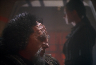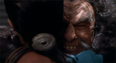 In a way, this is a very revealing look at the world of Deep Space Nine, a truly multicultural future, but there’s also a sense that certain cultural norms will have to get eroded in order for peaceful coexistence to be possible. Thew way Kang talks about the fact the grandchildren of his enemies are now friends sound like a bad thing. Deep Space Nine was a lot more open to multiculturalism than the other spin-offs.