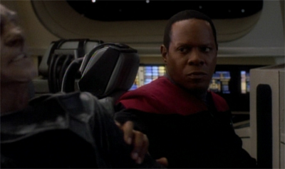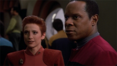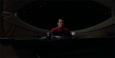 Given that both are widowers, and seem to be best friends who don’t even make time for another, it’s clear the only measure Sisko is using is the uniform. Indeed, Sisko couldn’t even be there for his friend following the death of his wife, due to the obligations that come with wearing the uniform. So Sisko is immediately and effectively established as a true believer in the philosophy of Starfleet, and the ideals of the Federation.