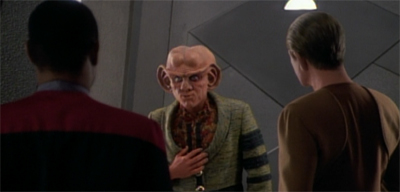 That’s something I hadn’t thought about much before, and I think you’re right. When anyone, “good” or “bad”, on The Next Generation or The Original Series stretched the truth, it was generally telegraphed a mile ahead of them and had an explicit correction to follow before the episode was done. That would repeat on Voyager with episodes such as “Renaissance Man”, where the episode didn’t maintain the illusion around what was happening for very long. Deep Space Nine was an exception at length, where we were regularly invited to speculate that maybe even if we weren’t shown or told how things happened differently from how characters described them, it was still likely we weren’t hearing a complete or accurate story.