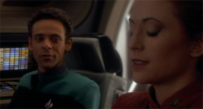 “I’ve made it a point to listen to Bajoran music ever since I arrived,” Bashir explains. It’s a nice character beat, easing Bashir away from the Federation boyscout who first arrived on Bajor to live out his fantasy of performing “frontier medicine.” Bashir doesn’t just treat the Bajorans as “natives”, but appears to be making some genuine effort to engage with and understand their culture. Of course, he’s still a bit of a jerk about it. “Tor strikes me as the best of the lot, really. Slightly derivative of the Boldaric masters of the last century but pleasantly diverting.”