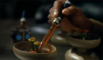 In fact, the opening sequence seems intended as a defense of Deep Space Nine‘s storytelling model, as Jake works on his science project. “That’s it?” Sisko asks. “You’re just going to watch it grow?” He could easily be expressing frustration with the storytelling mode adopted by Deep Space Nine, one favouring arc-building and character development over spectacle and “wow” factor. “Yeah,” Jake replies, simply. “Pretty neat, huh?” It is pretty neat to watch things grow, Jake. Especially when they turn into something as impressive as this.