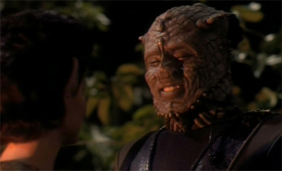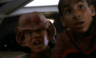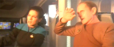 The only real problem with The Jem’Hadar is that it feels more like a mission statement than a compelling narrative. It seems like it might easily have been a throwaway episode from the middle of the season, with Sisko and Quark going on a camping trip before being abducted by a hostile alien species. The Jem’Hadar makes some pretty big declarations and hints at the shape of things to come, but it’s hardly a compelling narrative in its own right.