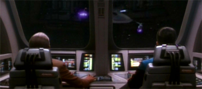 Okay, not the Enterprise. However, the Galaxy-class ship anchored at Deep Space Nine might as well be the Enterprise. A few inattentive viewers who missed Kira’s expository set-up of both New Bajor and the Odyssey might have thought that wonderful sweeping model shot was revealing that Picard and his crew had stopped by the station to lend a hand in this particular crisis.