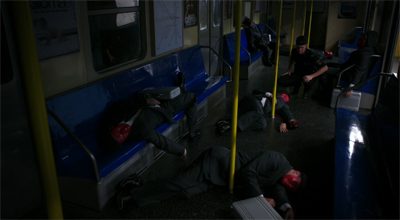 3. I`m still trying to figure out why all those masked guys carrying cases are marching around like the Hellfire Club guys in the X-Men comics. So they are trying to hide the diamonds? Why parade around drawing attention to themselves? They couldn’t figure out how to transport them secretly? And the preview for next week’s episode has an Asian guy with fire powers….if it’s not Sunfire…shit is going to hit the fan!