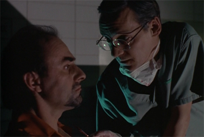 The only other defining feature is the way that it plays off the same sort of post war concerns as Ghost in the Machine, Eve and Fallen Angel, teasing the possibility that post war United States has been tainted by war crimes committed by the Axis powers during the conflict. It opens Ridley experimenting brutally on prisoners, for his own sadistic purpose. We’re told that Ridley was nicknamed “Doktor Mengele” by his colleagues. We’re told that he hid from the authorities in Central and South America, echoing many war criminals.