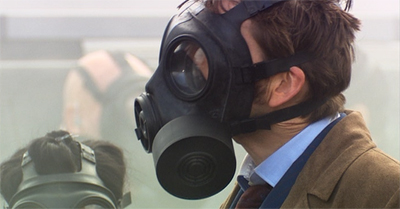 Another quick side-note: I like how Davies seems to be acknowledging the contributions made by Moffat to the show in his final year, recognising the work of the heir apparent. The opening scene of The Fires of Pompeii climaxes in a shout-out to Moffat’s first proper (non-spoof) Doctor Who script, The Empty Child. Here, the Doctor continues to express his fondness for the work of Steven Moffat. While goofing around and refusing to be helpful, the Doctor puts on a gas mask and asks “are you my mummy?”