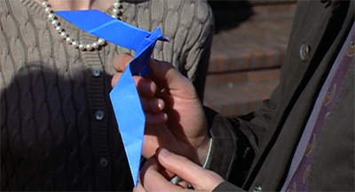 The origami animals also feels like they should be a little creepier than they turn out to be. Like creepy children, sculpture is something that can often be unnerving or unsettling. That said, it does seem a little weird that Mulder has to helpfully define origami as “Japanese paper folding” for those watching at home. (It’s quite similar to the sequence in The Erlenmeyer Flask where Scully becomes stupid so we can learn how DNA works. This was just before Jurassic Park was released, I suppose.)