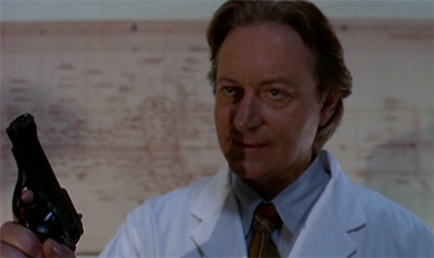 And then there’s the mechanism of Grable’s revenge. Grable uses his twin brother Roland to commit the murders. In Shadows and Born Again, the vengeful spirits stopped just short of having their hosts commit murder. The little girl in Born Again seemed to use the psychic ghost powers inherited from the dead cop, while the secretary in Shadows was just as freaked out by the paranormal goings-on as anybody else. Roland, on the other hand, is physically and directly responsible for the murders. He locks Surnow and Nollette in the chamber. He holds Keats’ head in the liquid nitrogen.