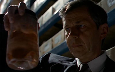 The Erlenmeyer Flask is quite overt in its handling of broken father figures. The central conspiracy is built around an experiment overseen by a male doctor to create new life. While E.B.E. played up the obvious father-son relationship between Mulder and Deep Throat, The Erlenmeyer Flask pushes it to the fore. Mulder rants about playing “the dutiful son“ jumping through hoops to impress his father. “My mother usually likes me home before the street lights come on,” he jokes.