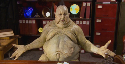 Which brings us to Victor Kennedy. The “super-fan.” Kennedy is a controversial character, and not just because his monster form was designed by the winner of a Blue Peter competition or because the use of Peter Kay is quite blatant stunt casting. Instead, Kennedy seems like a particularly bitter and direct attack upon a certain kind of fan, if not a certain individual fan. While LINDA are using their interest in the Doctor to enrich their lives, Kennedy arrives to try and control and pervert their fandom his own ends.