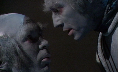 And it’s clear that Carnival of Monsters is held in high esteem. Not necessarily by fans, mind you. In The Television Companion, Howe and Walker offer a selection of criticisms of the story from various fan sources, including the observation that the story “could have been much improved with Vorg and Shirna very much toned down.” Which would seem to miss the point. The infamous Doctor Who “Mighty 200” poll, an accurate barometre of fan opinion, ranks Carnival of Monsters in the second quarter. It’s a respectable result, but places the story below The Sea Devils, Terror of the Autons and The Three Doctors.