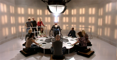 It is much more challenging, then, to bring back the parts that people had difficulty with, the more complex aspects of Doctor Who. The Long Game represents a conscious effort to reconnect with the classic series in a way that is just as important as bringing back the Daleks and the Cybermen and the Master. In this case, it’s confirming that “Doctor Who” doesn’t just mean “the Hinchcliffe and Holmes stuff” or “the Barry Letts era.” It must include the less popular eighties stuff. The Long Game effectively confirms that Davies’ vision of Doctor Who is a spiritual successor to the version that was edited by Andrew Cartmel.