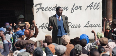 Naomie Harris also gives a great performance as Winnie Mandela, even if the bio-pic seems satisfied to reduce the character to a familiar archetype. Harris channels Winnie’s outrage and anger very well, lending the under-written part considerable gravitas. If Harris had stronger material to work with, the film would really soar. As it stands, she’s stuck delivering an impressive performance of a two-dimensional character.