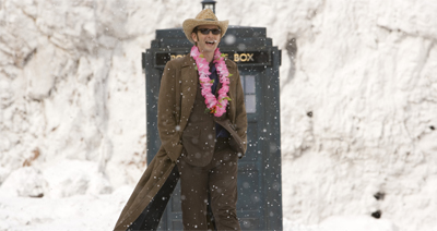 After all, Davies litters The End of Time with references and shout-outs to Moffat, creating a decidedly “timey wimey” sense that he’s almost homaging an era that will follow his own. Davies is a fan of Doctor Who, and he’s even a fan of the Doctor Who that will be produced after he leaves. For all that the Tenth Doctor’s angst (“I don’t want to go!”) can be seen as a reluctance to hand over the reins, it is quite clear that Davies wishes his successor the best of luck, and that he relishes the opportunity to be fannish.