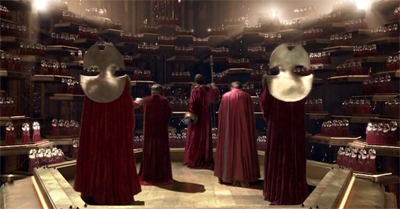However, The End of Time has to contort quite heavily to justify these elements. Davies crams a whole narrative about the botched resurrection of the Master into the first ten minutes. It’s a scene that involves a lot of exposition, as various characters reveal various plans to one another, a series of gambits competing against each other and piling up. In a single scene, we discover that not only is a cult conspiring to resurrect the Master, but that Lucy Saxon has figured this out and put her own counter-plan into effect.