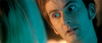 And Davies is quite candid here. Rose doesn’t accept the Tenth Doctor; she’s probably speaking for a significant portion of the audience. The whole relationship is thrown into doubt; everything changes, nothing is constant. “Do you want to leave?” the Doctor asks. “Do you want me to leave?” Rose replies. “No!” he answers, reflexively. “But… your choice… if you want to go home…” This is a much more intimate and personal response to regeneration than we’ve ever really seen before.