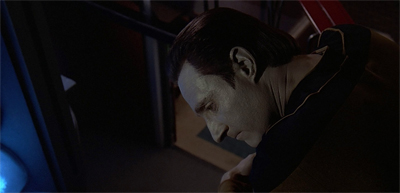 It’s hard not to cringe in the scenes where Graves-as-Data professes his love for Kareen. We’re so used to seeing Data’s face as relatively blank and emotionless that it’s awkward to see it contort and move in a more human manner beneath that white make-up and yellow contact lenses. Spiner does intense frustration and bitterness remarkably well, and his version of Graves manages to strike us as a very broken individual, his misogynistic tendencies not withstanding. (Also creepy: that scene where Data “checks out” a female crewmember.)