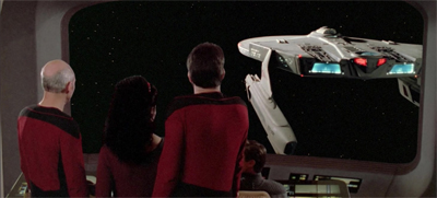 When Picard asks for Troi’s professional opinion, the counselor offers, “I’ve never met a more dedicated physician. I would say she has a passion for her work.” Picard blandly replies, “Yes, of course. I entirely agree.” When Picard tries to get a reference from her former superior, Taggart laments the fact that he had to lose her to the Enterprise. “I would have given her a shuttle if it would have kept her here.”