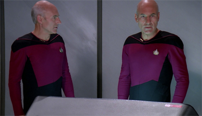 The universe of Star Trek must be terrifying. I’m not even talking about the Romulans or the Klingons or the Borg or fear of death by oxygen starvation or even the random god-like entities that seem to stalk the cosmos. In a limitless universe, it seems inevitable that you will stumble across some version of yourself sooner or later. “Well,” Picard muses in the episode’s closing scene, “they say if you travel far enough you will eventually meet yourself. “ That seems particularly true in Star Trek.