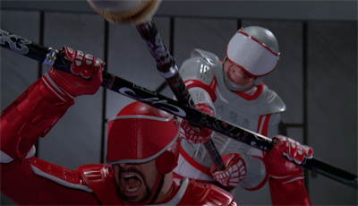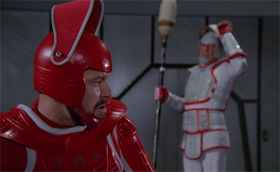 The fact that Deanna Troi, the ship’s counsellor, is willing to sit on the sidelines and let Will and Kyle pummel each other doesn’t paint her in a very flattering light. Particularly since her justification is that this is really just “guy stuff.” As the Rikers work things out in their armour with their big sticks, Pulaski and Troi gossip about their men in the Briefing Room. Which feels like it’s really not the place for that sort of thing.