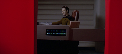 But the whole subplot feels a little limp. The Next Generation would revisit this sort of plot in the fifth season, with Data forced to deal with an insubordinate second-in-command during Redemption, Part II. There, at least, the writers are able to create a sense of real conflict and ego at play, and it works a lot better – even if it feels like it’s a subplot too many in an over-crowded episode. Apparently the writers quite liked this sort of plot, because Beverly brushes up against it in Descent, Part II as well. It’s not handled particularly well there, but at least it’s brief.