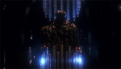 That said, it is very nice to see an alien species that doesn’t look like an actor with a rubber forehead attached, and the design of the Sheliak is suitably atmospheric and vaguely discomforting. There’s a sense that these are creatures that are truly alien – that aren’t really humanoid and look a bit different from the vast majority of aliens presented on Star Trek. These aren’t creatures with two arms and two legs. They are something different.