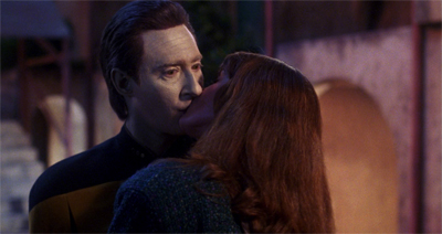 The script, as I wrote it, is not exactly what got filmed – because Brent felt I was making Data too emotional. And in fact, I was not, because I was faced with trying to have a robot seduce a woman – or, at least, go physical with a woman – and not be emotional about it. And I was very careful to write it in a way that didn’t, but Brent viewed it as too emotional. So I think there was a tension between how he was written. I was trying to keep him as a thinking machine, groping to understand.