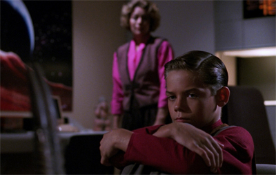 Again, there’s a sense that Moore is teasing out something that Roddenberry’s idealistic future tended to overlook. The Bonding dares to question whether having families on a ship like the Enterprise is ever a good idea.