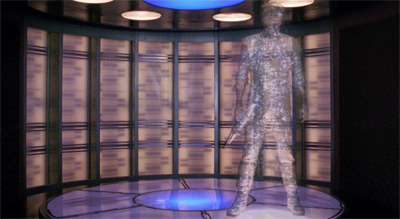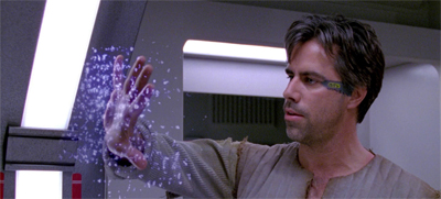 In one sense The Hunted seemed to be The Next Generation’s Vietnam episode just as A Taste of Armageddon was Classic Trek’s Vietnam episode. Whereas A Taste of Armageddon dealt with endlessly fighting a war out of habit wherein no clear goals exist any longer, The Hunted is like a Vietnam aftermath story. When men are trained to kill and be the perfect soldier, where is their place in a peace time society when the war is over? This is a question that Vietnam veterans are still wrestling 20 years after the end of that conflict.