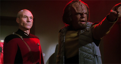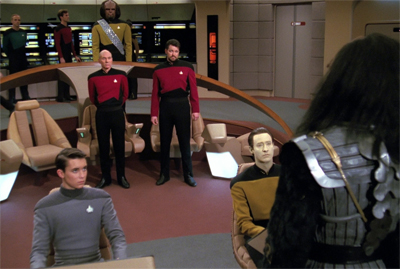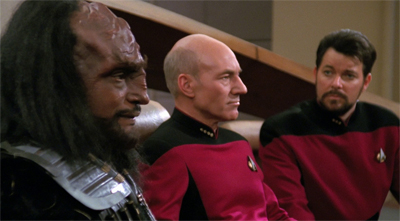 It’s not the most fluid plotting in the history of Star Trek. It’s very strange, from a structural point of view. And yet, it mostly works. The Next Generation is a show that can get a little too comfortable with itself, and can very easily settle into autopilot. The fact that it’s easy enough to deduce Kurn’s character arc from one act of the teleplay suggests that it is possible for the show to trade in cliché. Even if pulling a first act bait-and-switch like this feels a little cheeky, it does suggest that The Next Generation is changing things up.