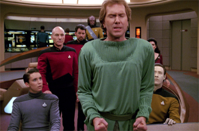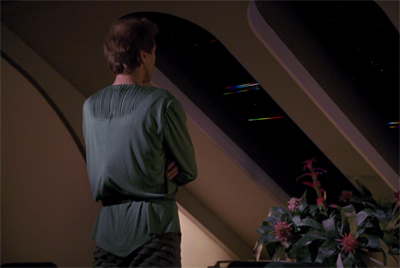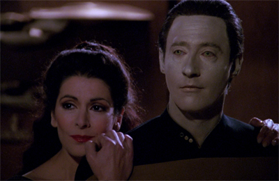 It’s interesting that The Next Generation has really taken this long to play with the idea of what it must be like to be a Betazoid. Although they tend to be taken for granted now, Betazoids were one of the most significant introductions made by the early episodes of The Next Generation to the Star Trek mythos. Deanna Troi visited Betazed in Hide and Q, early in the first season. A Betazoid wedding was a source of amusement in Haven. One of the show’s few recurring characters from outside the crew is a Betazoid diplomat.