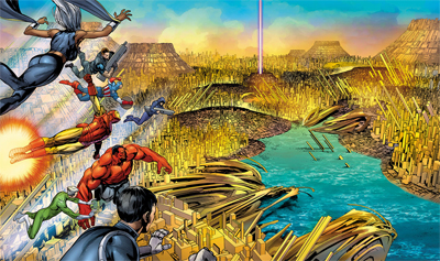 There’s no effort made to define Ultron or what he wants. Indeed, Ultron is pretty far removed from the action for most of the story. The story opens with Ultron already having conquered the world, and it’s revealed quite quickly that he is controlling events from the future. Which might be an interesting story hook, but it’s really just introduced to make it harder for the heroes to stop him. Ultron is in the event’s title, but he is so generic that he could easily have been replaced by somebody like Apocalypse.