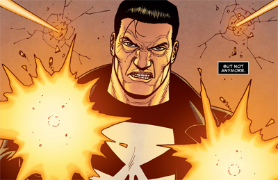 However, what’s more striking is the way that Aaron seems to capture Ennis’ voice for Frank. Frank is a man of few words, but Ennis always treated him as the universe’s straight man. Frank Castle could be wry and cynical and sarcastic to beat the band. Aaron’s version of the character has inherited those quirks, with Aaron writing Frank as a character constantly on the verge of collapse. “Be dead, you bastard,” Frank thinks during one confrontation. “Be dead so I can pass the $#!& out.” As his assailant climbs to his feet, Frank reflects, “Don’t hurt yourself.”