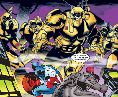 Still, that’s a problem outside Waid’s control. What’s interesting (and slightly ironic) about Waid and Garney’s Captain America is that it consciously feels like a shake-up. It’s obviously not as hard a reboot or relaunch as would directly follow their work, but there’s a clear sense that this is a new take on Captain America. Mark Waid is taking over from an author who worked on the character for decade. Even ignoring the weaker stories towards the end of Gruenwald’s run, that’s still a pretty big shadow.