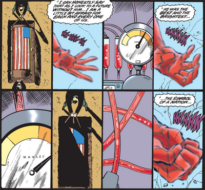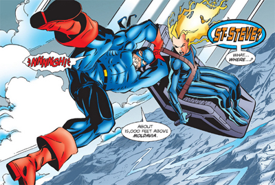 Mark Waid acknowledges that nineties geo-politics are more complicated than they used to be. Steve finds himself entangled in issues of proliferation in Eastern Europe, navigating tense international relations. “Listen,” Sharon tells him, “I learned a lot more about America from the outside than I ever did from the inside.” Waid forces Rogers into the awkward position of viewing America from the outside, trying to immerse himself in the wider world in Man Without a Country.