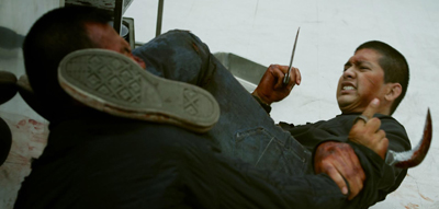 And The Raid 2 works best when it plays up this sort of heightened artform. This is a world where goons have their own themes – watch out for hammer girl and baseball boy! It’s a world where colours are carefully chosen to offer viewers the most visually diverse knock-down brawl – the deep reds of a posh restaurant! the metallic grey of a prestigious kitchen! the off-green of a prison mudpit! In particular, there are several prison-themed sequences that measure up to anything in The Raid and some wonderful use of vehicles towards the end of the film.
