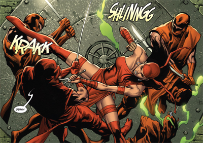 “The age of man shall end — and none be spared but Snakeroot!” the Hand vow, in a scene which establishes that Shadowland really belongs to an altogether more generic genre than the Daredevil comic it ties into. This is another “end of the world” comic book event involving some larger-than-life threat that poses a risk to all life on the planet, at the very least. This is not what made Daredevil such a successful comic, and using a story like this to cap off the run feels like an error in judgement.