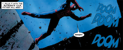 And yet, as much as Grim Hunt evokes Daredevil, it also emphasises the differences between Spider-Man and Daredevil – much as the similarities between The Gauntlet and Knightfall serve to distinguish Spider-Man from Batman. Here, Spider-Man is defined as “the moral fibre that runs through everything”, the one absolutely incorruptible and uncompromising figure, no matter the chaos and uncertainty that exists around him.