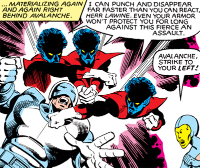(And, in typical Claremontian fashion, there’s also a wonderful amount of foreshadowing of soap opera plotting. While some of the developments spinning from Days of Future Past seem organic rather than planned, the short scene between Mystique and Nightcrawler seems to serve a very particular purpose. “Your skin — your eyes — if this is indeed your true form — meingott, we are so alike!” Nightcrawler exclaims, before Mystique makes reference to knowing the mutant’s mother. It wonderfully foreshadows Claremont’s original plan to have Mystique as Nightcrawler’s father.)